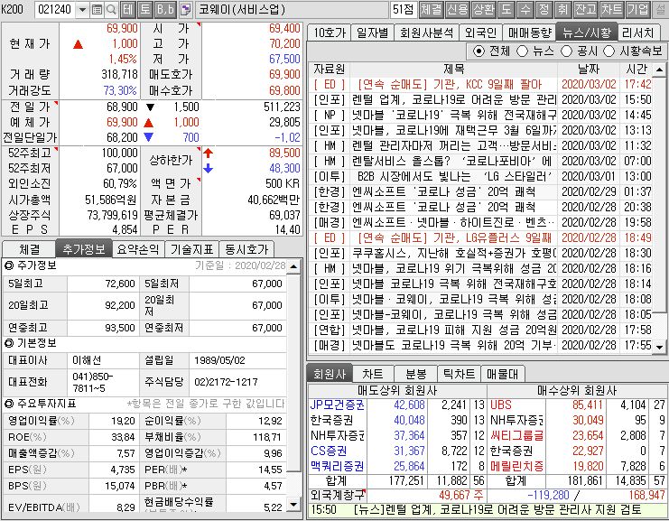 | (021240) 코웨이 - (4) 경영실적 (0) | 2020.03.03 |