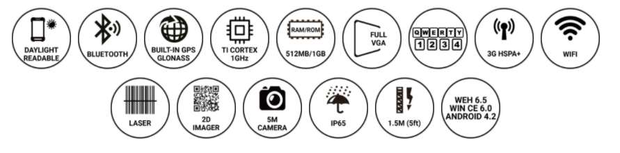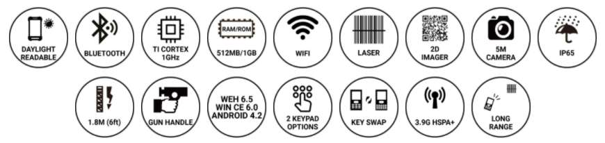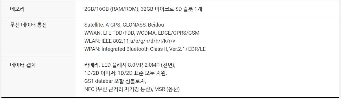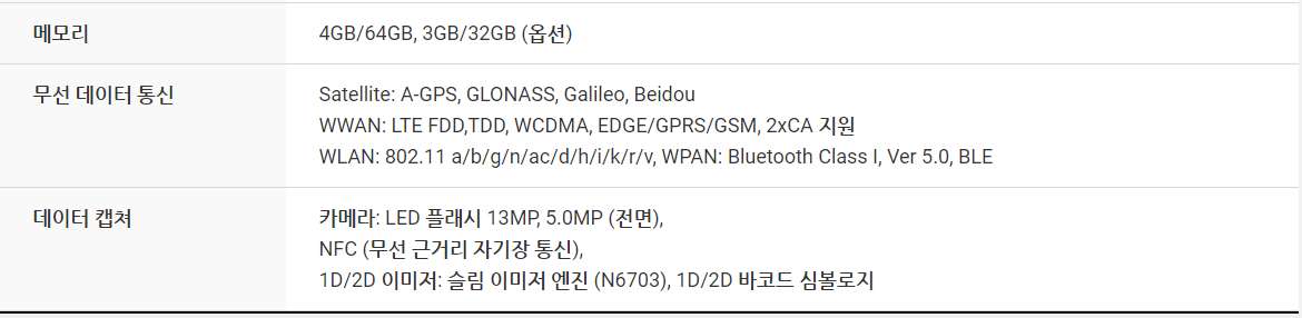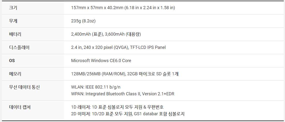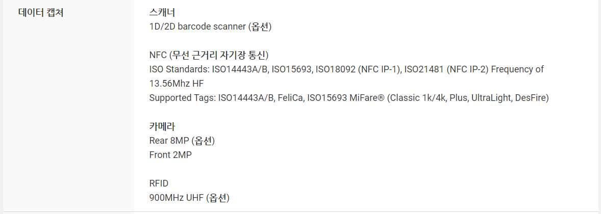 무선 기능은 Wi-fi IEEE 802.11 b/g/n 및 EDR(Enhanced Data Rate) 기능의 Bluetooth v.2.1 클래스를 지원합니다. PM200에는 바코드 스캐너, 1D 레이저 스캐너 및 1D/2D 이미저가 탑재되어 있습니다. PM200은 재고 및 자산 관리와 같이 데이트 스캐닝이 집중적으로 요구되는 산업 현장에서 작업자에게 편안함을 제공합니다.