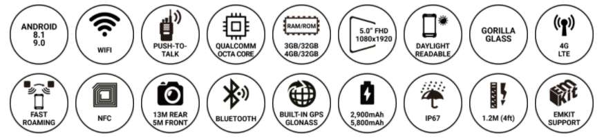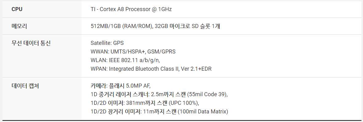 IP65 방진 방수 성능과, 1.8m 낙하에도 견디는 PM450은 어떤 사용환경에서도 문제 없습니다. 또 모빌리티 장비에도 뒤처지지 않는 3.9G HSAP+와 IEEE 802.11 a/b/g/n을 지원하는 무선통신과 GPS 그리고 LED Flash가 달린 5MP 카메라까지 적용됭 실내 외 모든 환경에서 사용 가능합니다.