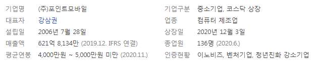 | (318020) 포인트모바일 - (1) 회사소개 & 파트너 소개 (0) | 2021.01.19 |