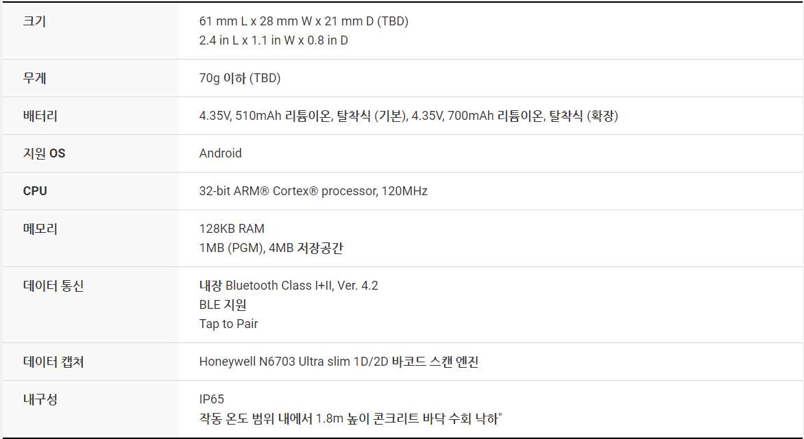 PM3은 ARM® Cortex®-M4 RISC 프로세서, 1D/2D 바코드 스캐너, Bluetooth Class II v.2.1 + EDR 및 GPS 및 NFC가 장착 된 1.0 인치 OLED 스크린 Bluetooth 스캐너입니다. PM3은 1.5m의 낙하사양과 IP54의 방진/방수 등급을 가지고 있습니다.