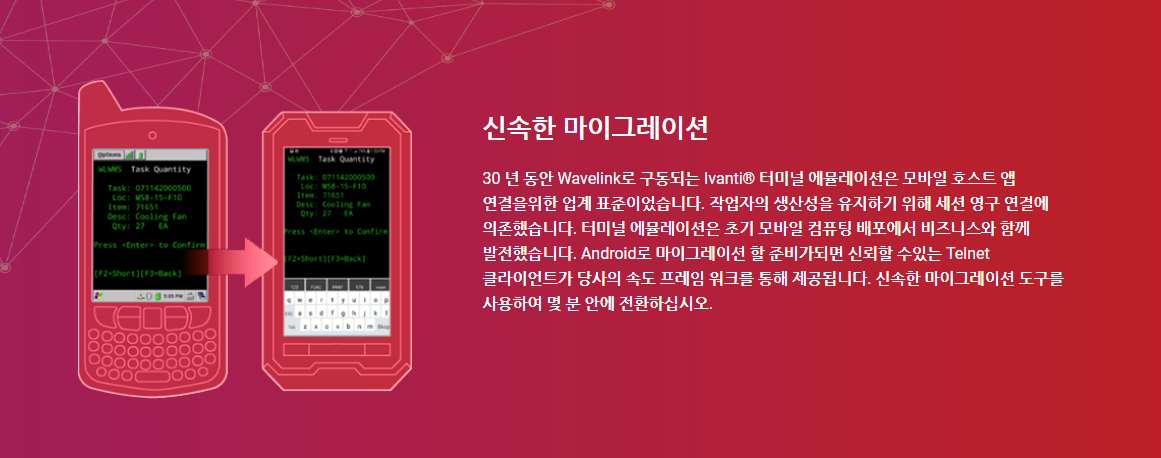 LTE 옵션을 통해 네트워크 연결 상태를 걱정할 필요 없이 작업을 계속 수행할 수 있습니다. 한층 더 빠르고 끊김없는 데이터 입력/전송을 통해 실내외의 모든 물류 창고 과제들을 손쉽게 해결하여 생산성을 극대화 할 수 있습니다.