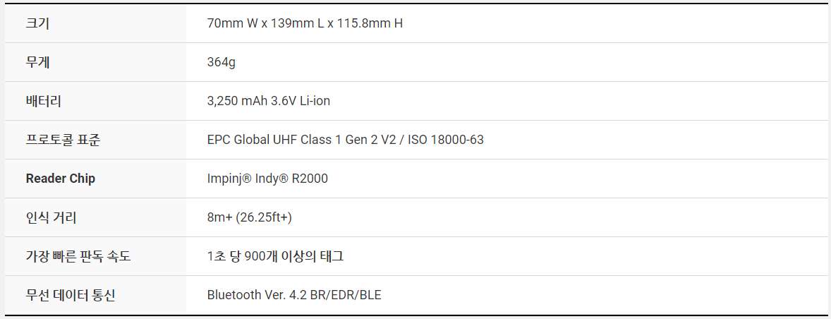 8m의 인식 거리, 초당 800개 이상 태그 판독