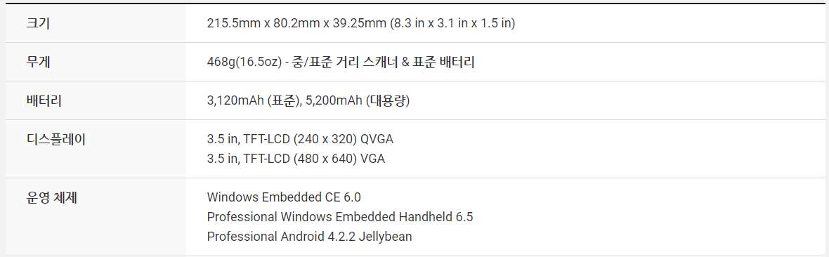 새로운 4.3 인치 터치 스크린으로 가시성을 극대화 하여 필요한 작업을 실행하십시오. 화면에 가상 키패드가 제시되지 않아 사용자의 시야가 방해받지 않습니다. 6,300mAh 용량의 교체 가능한 배터리는 사용자가 최대한의 능력을 발휘할 수 있도록 합니다. 사용자의 생산성을 향상시킬 수 있도록 화면 크기를 확장하고 배터리의 용량을 키웠습니다.